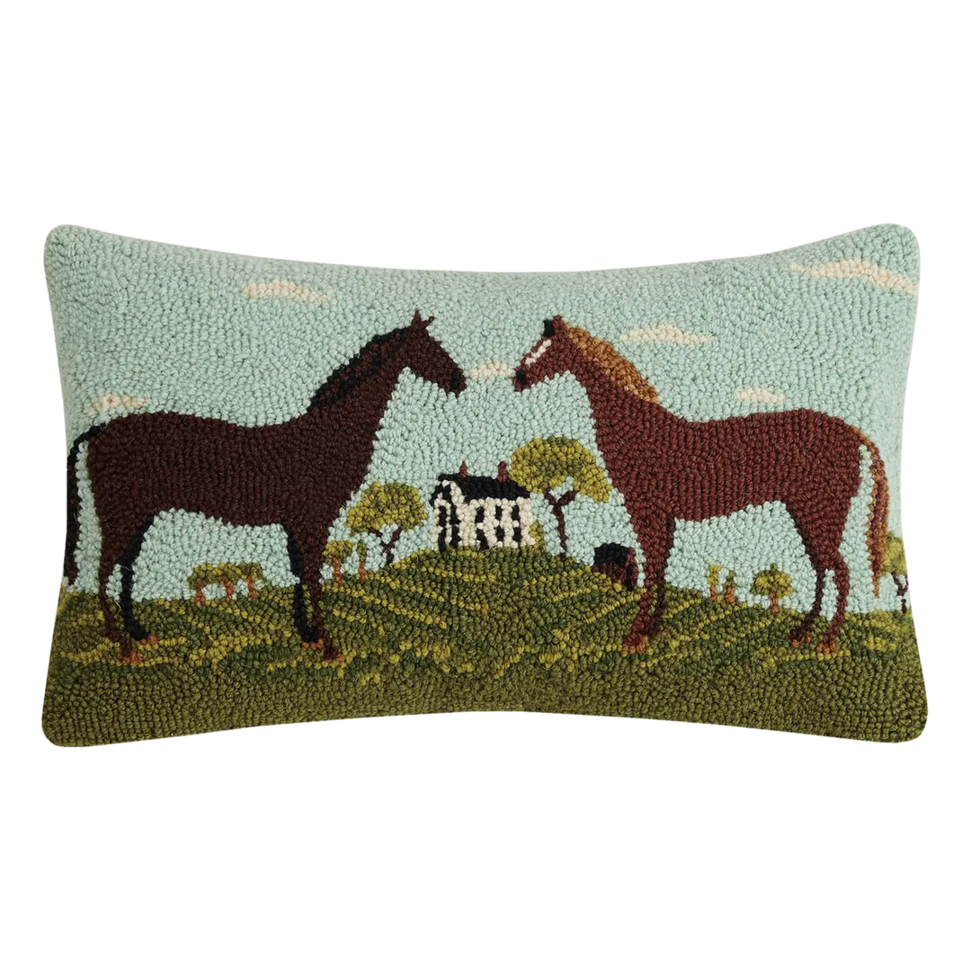 Black and Brown Horses Hook Pillow - Warren Kimble