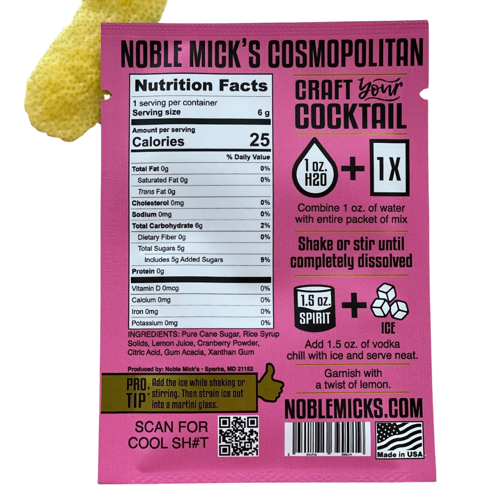 Noble Mick's Cosmopolitan single-serve craft cocktail brings the classic taste of sophistication wherever you are. Whether you’re lounging at home or out and about, you don’t need a cocktail shaker or a stocked bar to enjoy a delicious drink. 🙌