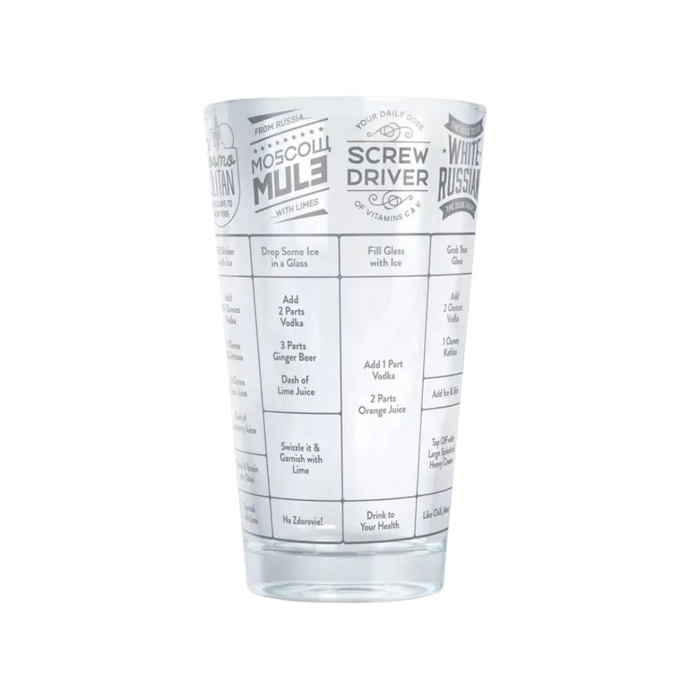 Shake up happy hour with the Good Measure Recipe Glass! This 16 oz glass is printed with 7 delectable vodka cocktail recipes — so you can mix, stir, and pour like a pro every time. From classic favorites to fresh discoveries, it’s a fun and functional addition to any bar cart.
