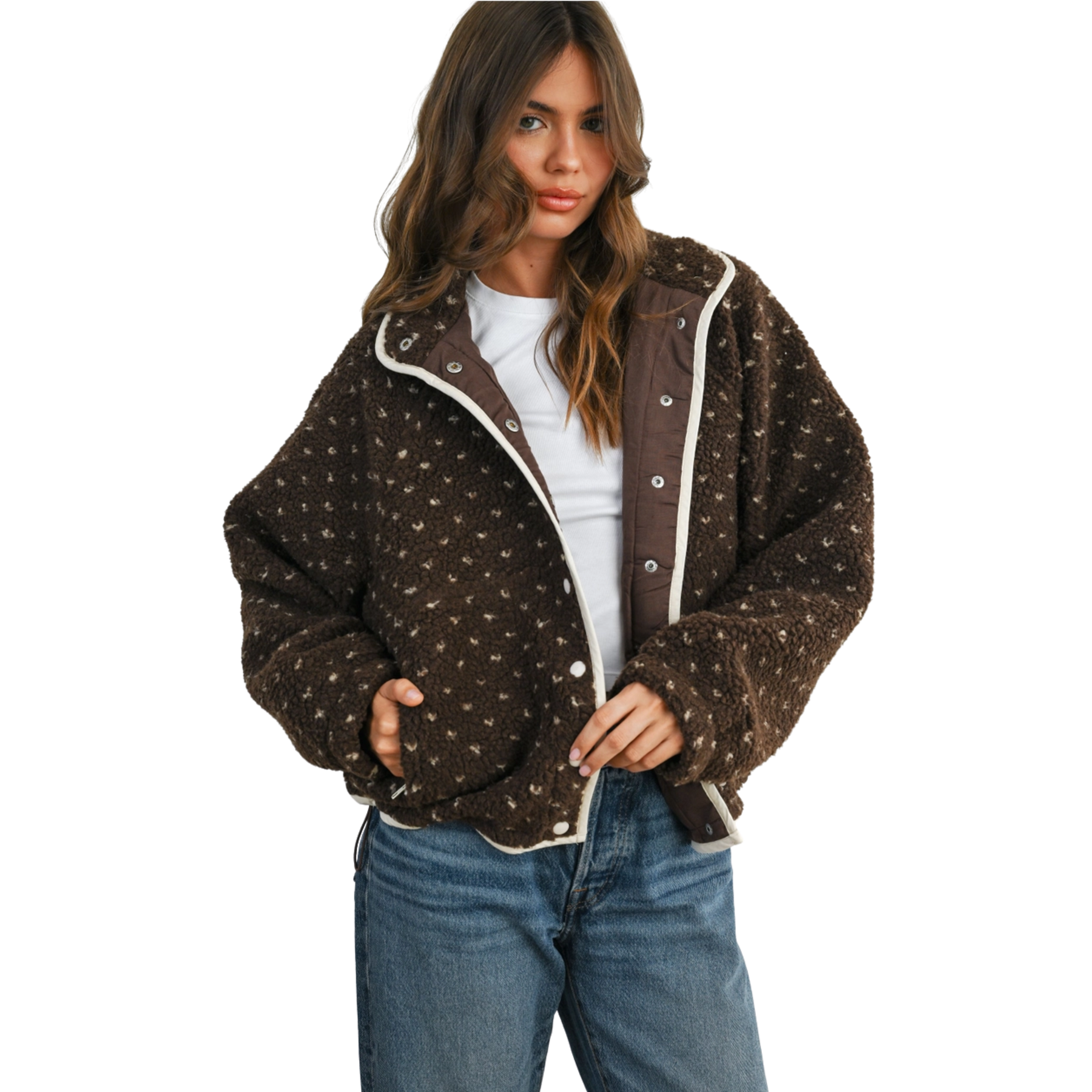 Stay extra cozy this season with the High Pile Fleece Puffer Jacket — your new cold-weather favorite. Made with ultra-soft, high pile fleece and a quilted puffer design, it delivers the perfect mix of plush texture and toasty warmth. Effortlessly stylish with a relaxed fit that layers beautifully over sweaters or tees, this jacket is your go-to for every chilly day ahead. ☕💫