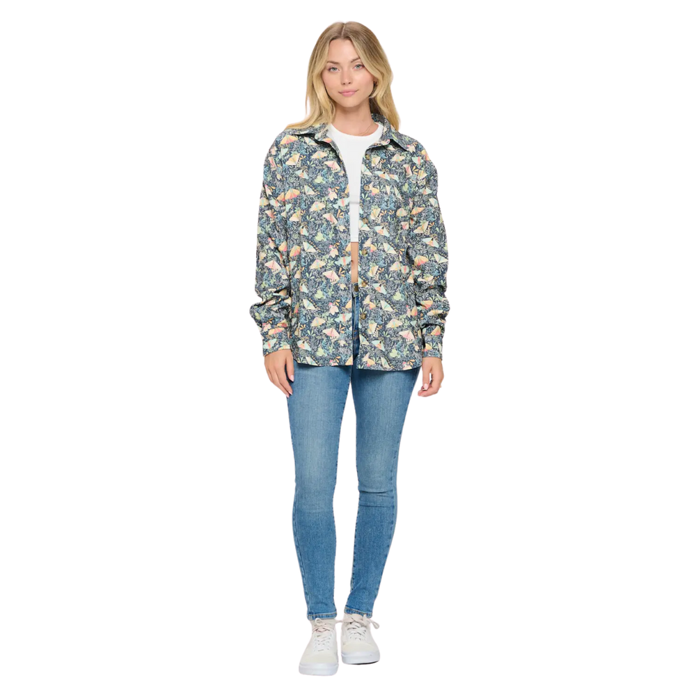 Make a subtle statement with this cozy corduroy shirt featuring an enchanting all-over moth print. With its soft stretch and timeless silhouette, it’s perfect for layering over tees, pairing with jeans, or buttoning up for an effortlessly cool look.