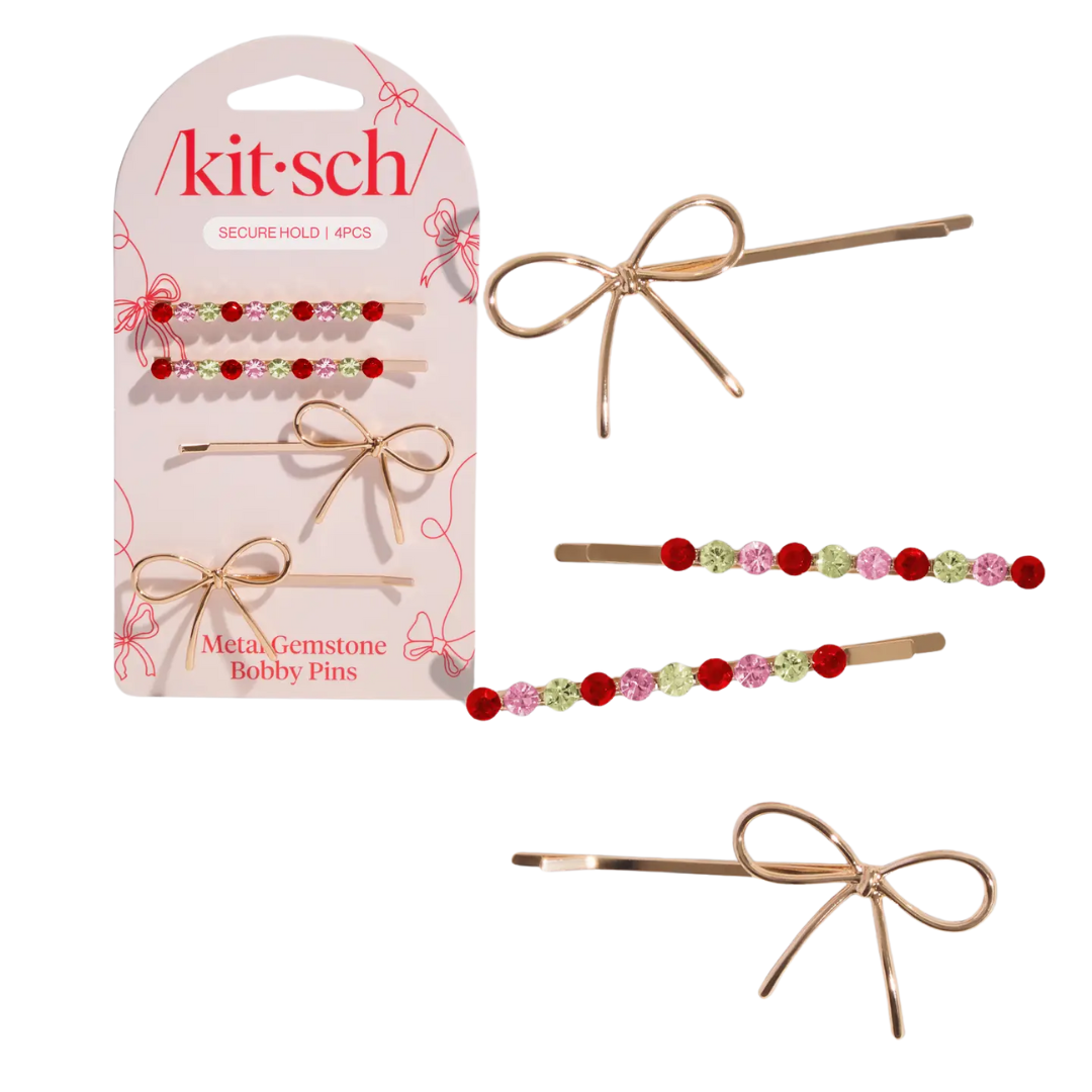 Holiday Gemstone and Bow Bobby Pins 4pc Set