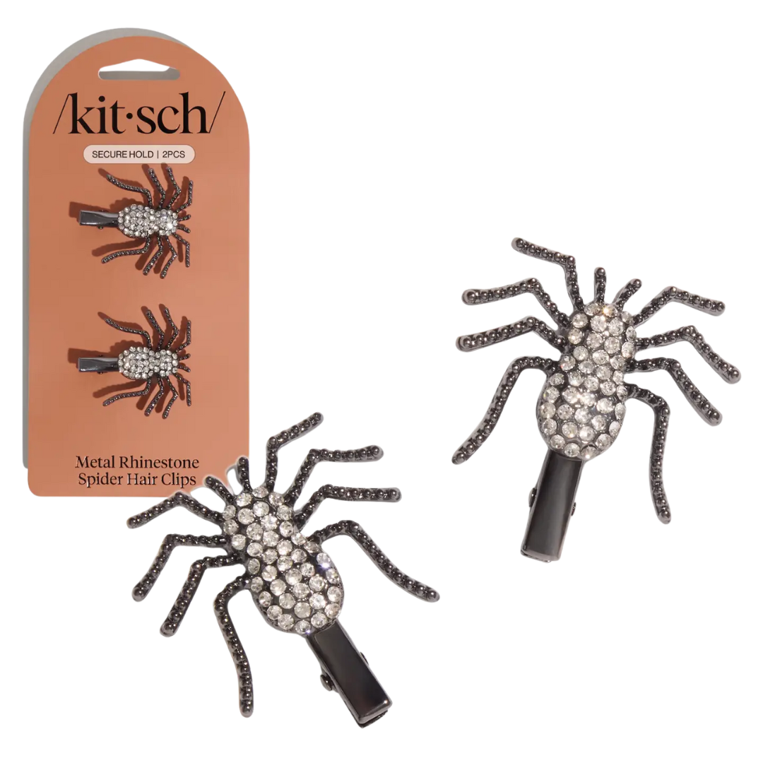 Metal Rhinestone Hair Clips 2pc Set - Spider