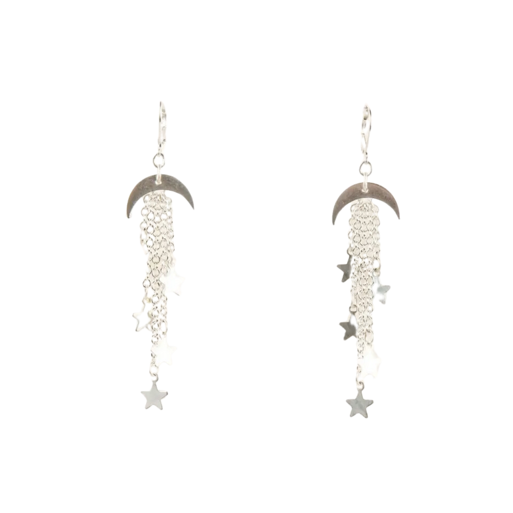 With a delicate crescent moon and a cascade of falling stars, the Moon & Star Dangle Earrings are the perfect accessory for those who love all things celestial. Light-catching and graceful, these earrings add an ethereal touch to any outfit. Handcrafted in a fair trade workshop in Guatemala, they blend artisanal craftsmanship with cosmic beauty.