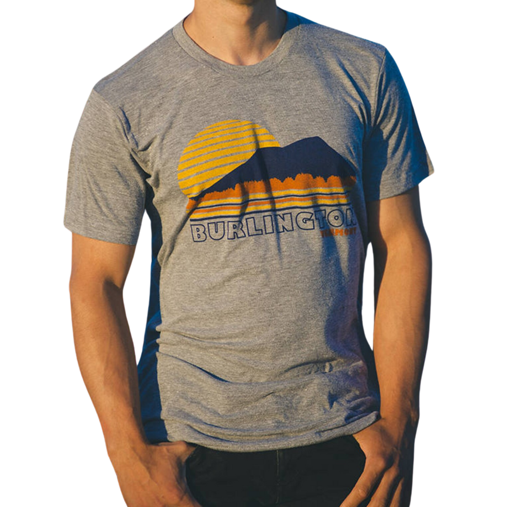 Show your Vermont pride with this soft and stylish Burlington Sunset tee, handprinted with love in Vermont. Featuring a stunning three-color sunset design, this USA-made tri-blend tee is perfect for locals, visitors, and mountain dreamers alike.