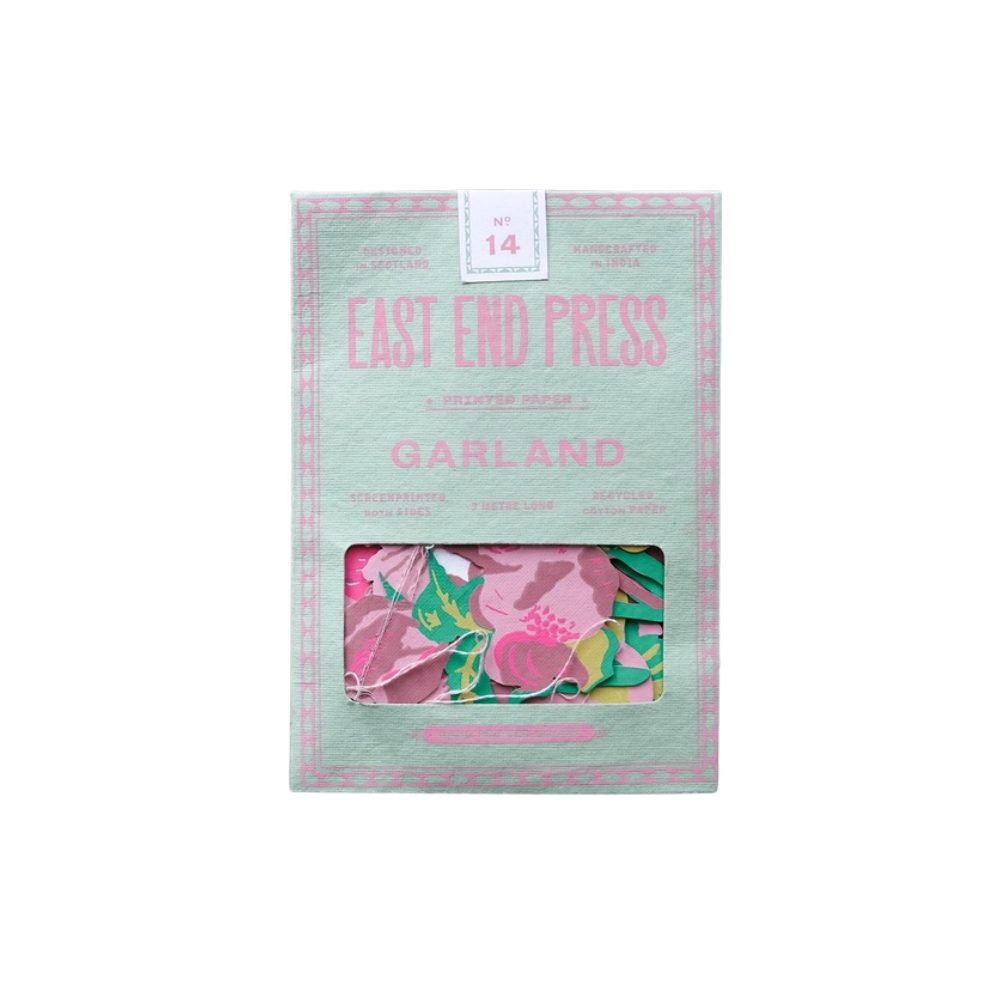 With plump pink blossoms sewn along a three-metre length, this garland adds instant cheer to walls, windows, mantels, party tables, or seasonal displays. Each piece is screen printed by hand on both sides by skilled artisans in Jaipur and thoughtfully made using recycled materials.