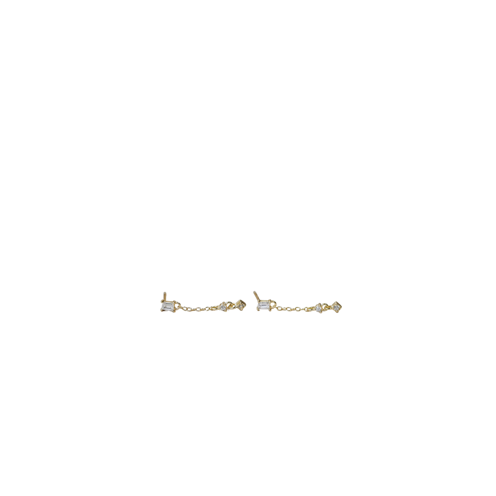 Minimalist meets elegant in the Baguette Drop Earrings. A sleek white baguette CZ stud anchors a delicate drop chain, finished with a tiny CZ for just the right touch of shimmer and movement. Lightweight and effortlessly chic, they’re perfect for dressing up your everyday or completing a night-out look.