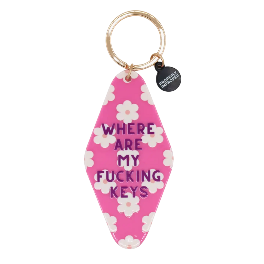 Where Are My Fucking Keys - Purple Floral Printed Keychain