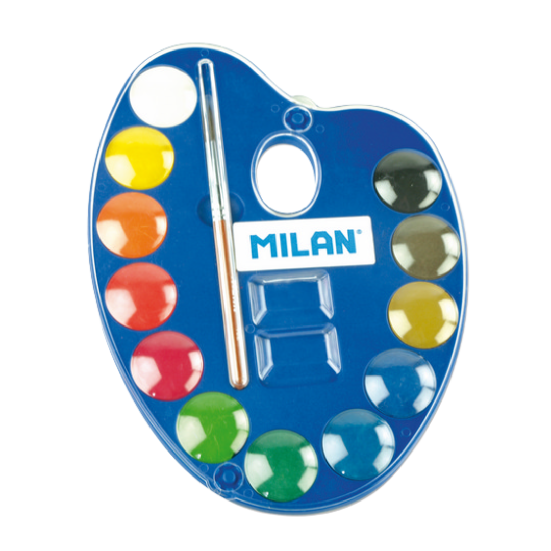 Milan Watercolour Palette Tablet Set of 12 (with Brush)