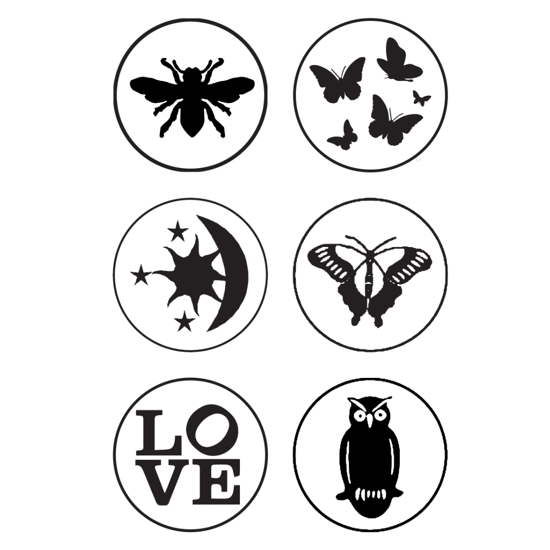These solid brass wax seal dies create crisp, beautiful impressions and are designed to fit any of our wood, glass, stone, or vintage handles (sold separately). Choose from classic symbols like Bee, Butterflies, Butterfly, Celestial, LOVE, and Owl.