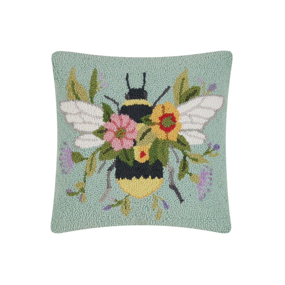 Floral Bee Over Flowers Hook Pillow - Susan Winget