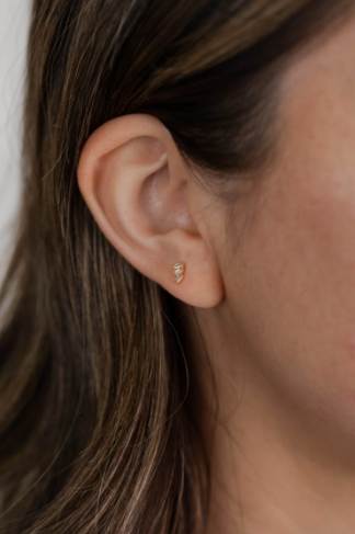 Three dainty baguette set stones slope delicately down off one another, giving off a major art deco mood. Show this pair off with your sleek chignon, or in your post-workout bun.