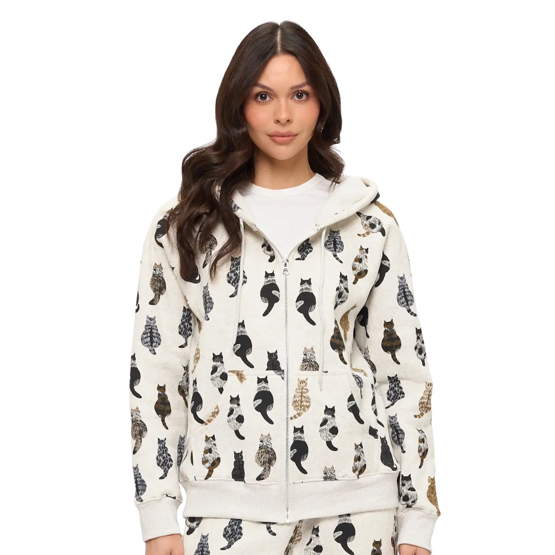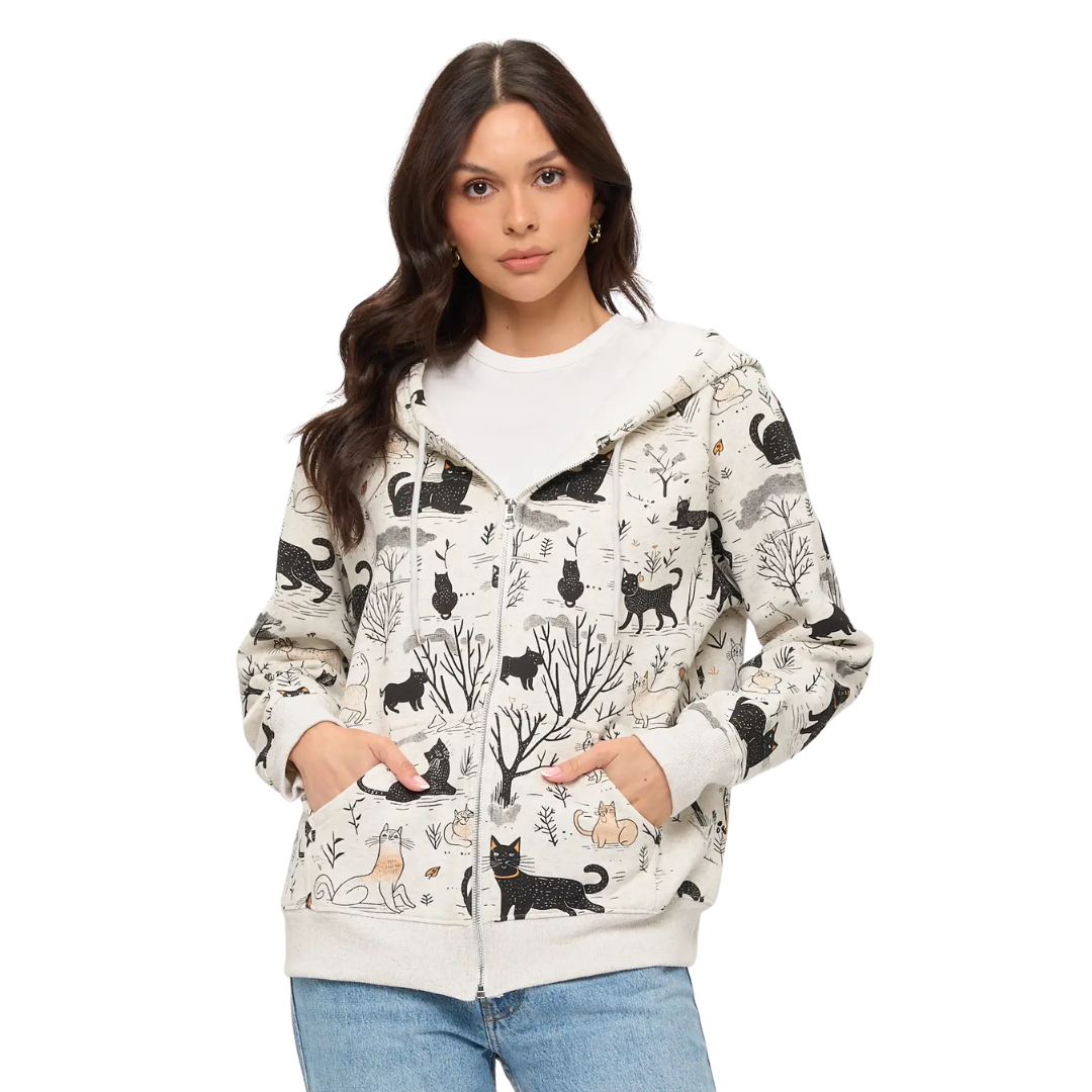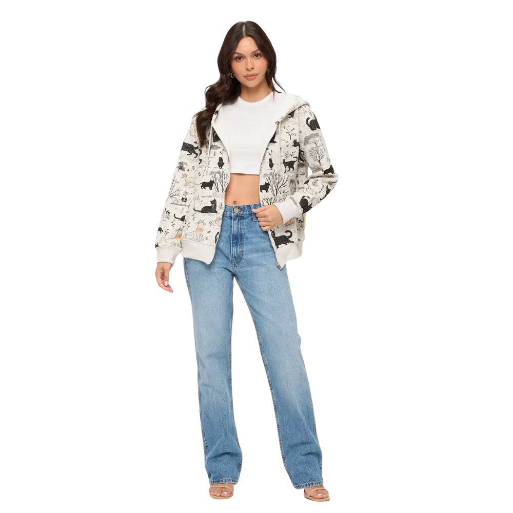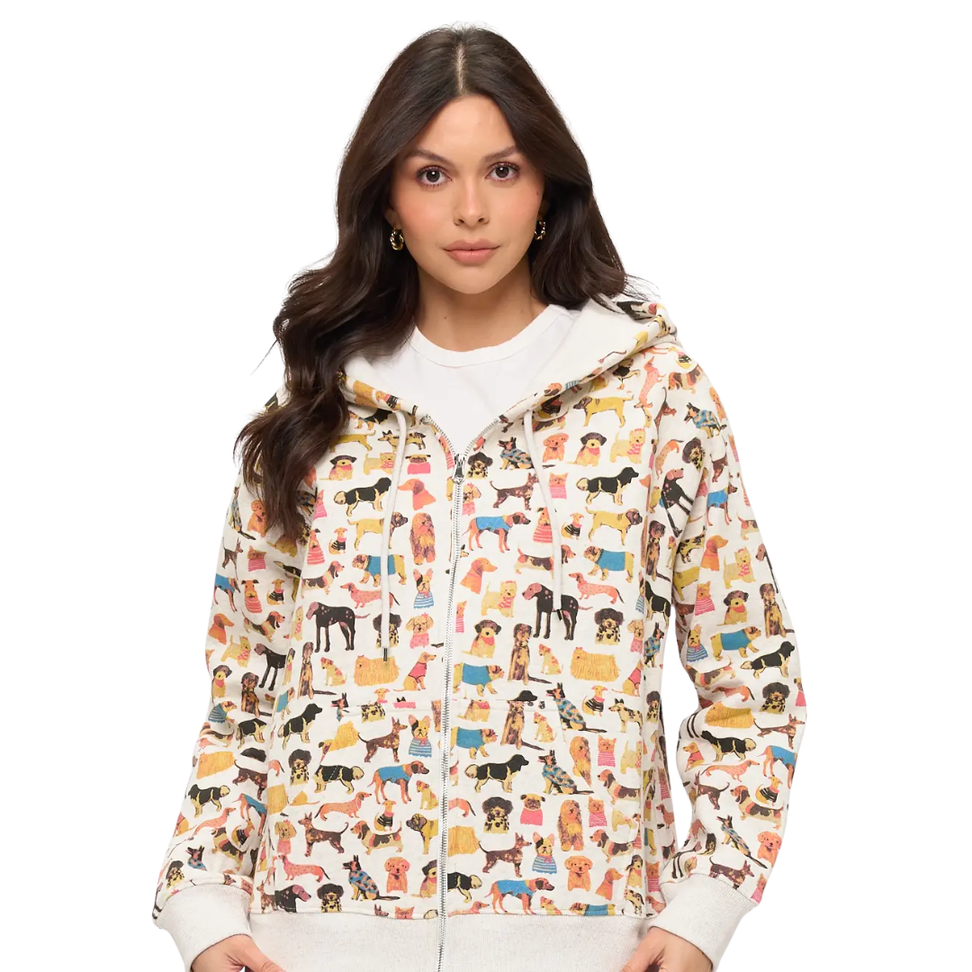 Colorful Graphic Dogs Print Zip Up Hoodie