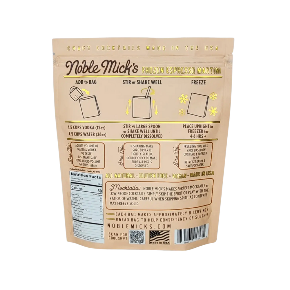 Frozen Cocktails don’t get easier than this! 🍹 Each bag makes 8 servings—no blenders needed! Simply add 12oz Vodka 🍸 and 36oz water 💧, shake or stir, then pop it in the freezer. 🧊