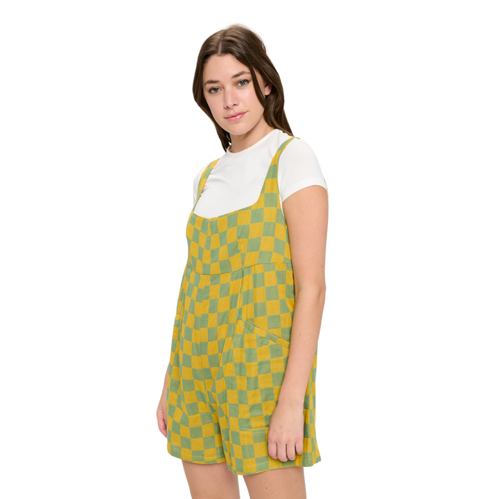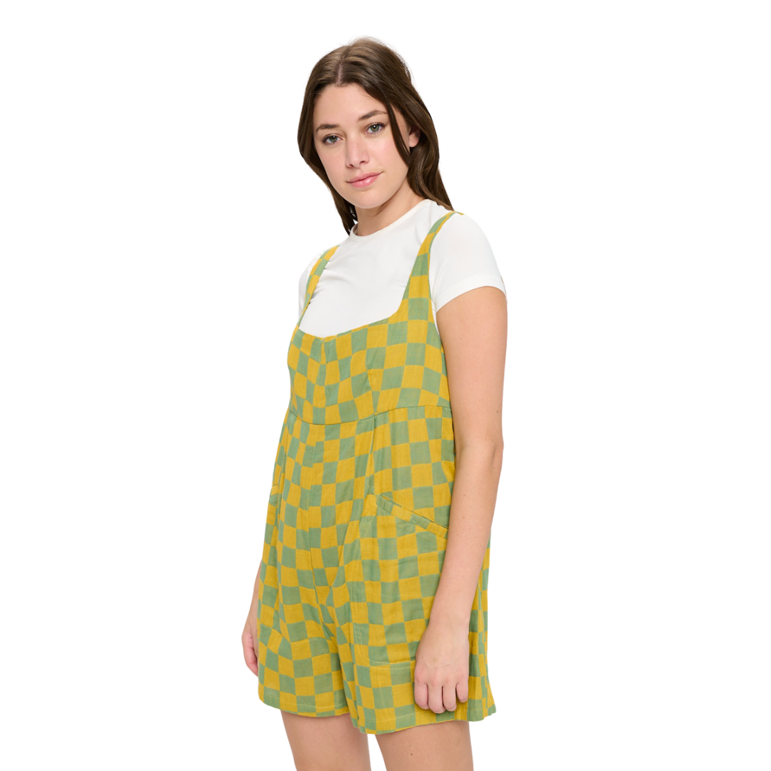 Channel your inner retro goddess with these playful checkered shortalls! Bursting with bold, contrasting colors and a classic pattern, they offer the perfect mix of vintage charm and modern flair. Whether you're heading out for a casual day, a festival, or just embracing your spontaneous, free-spirited energy, these shortalls are a must-have for every fun-loving fashionista!