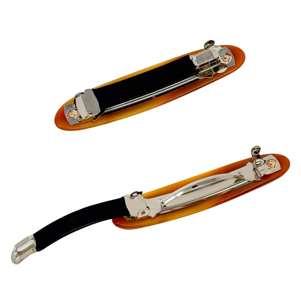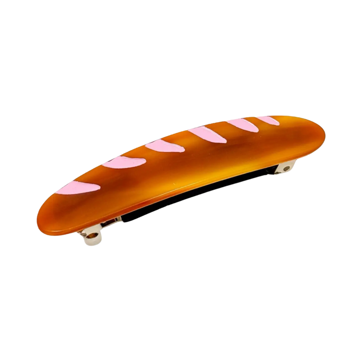 Add a little je ne sais quoi to your hair with this charming baguette-shaped French barrette. Handmade from cellulose acetate and hand-painted for extra flair, no two are exactly alike—just like your style.