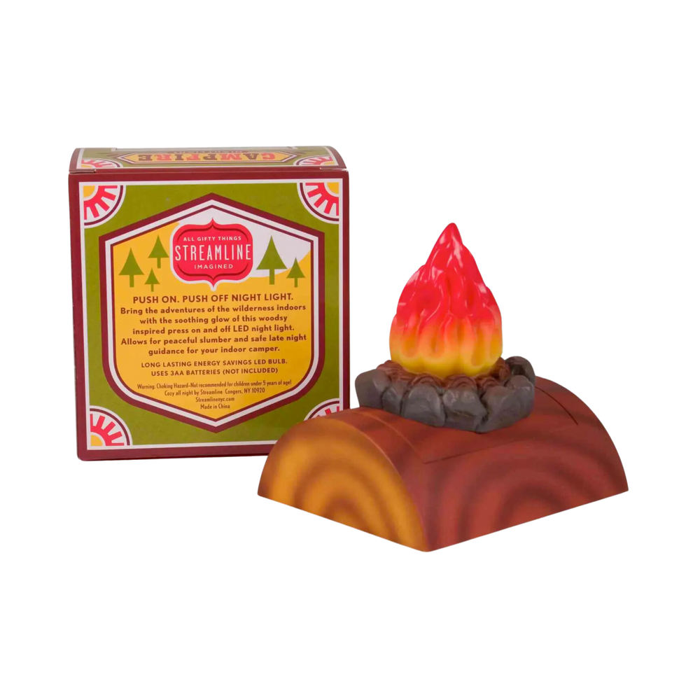 Push on. Push off night light. Bring the adventures of the wilderness indoors with the soothing glow of this woodsy inspired press on and off LED night light. Allows for peaceful slumber and safe late night guidance for your indoor camper. Push on/off light feature Includes energy saving bulb Uses 3AA Batteries (Not included)