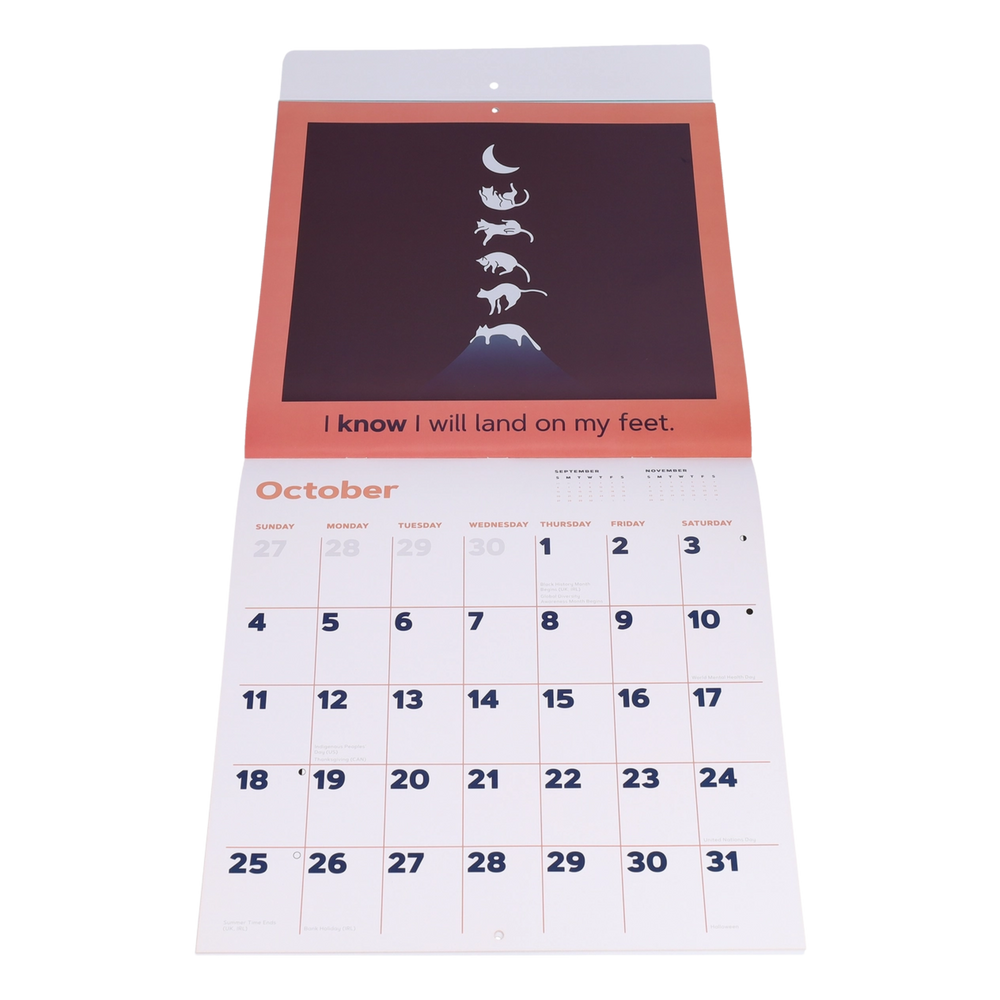 ✨ Interactive Fun – Enjoy searching for the cleverly concealed felines each month, then reflect on the uplifting affirmation to inspire your days.