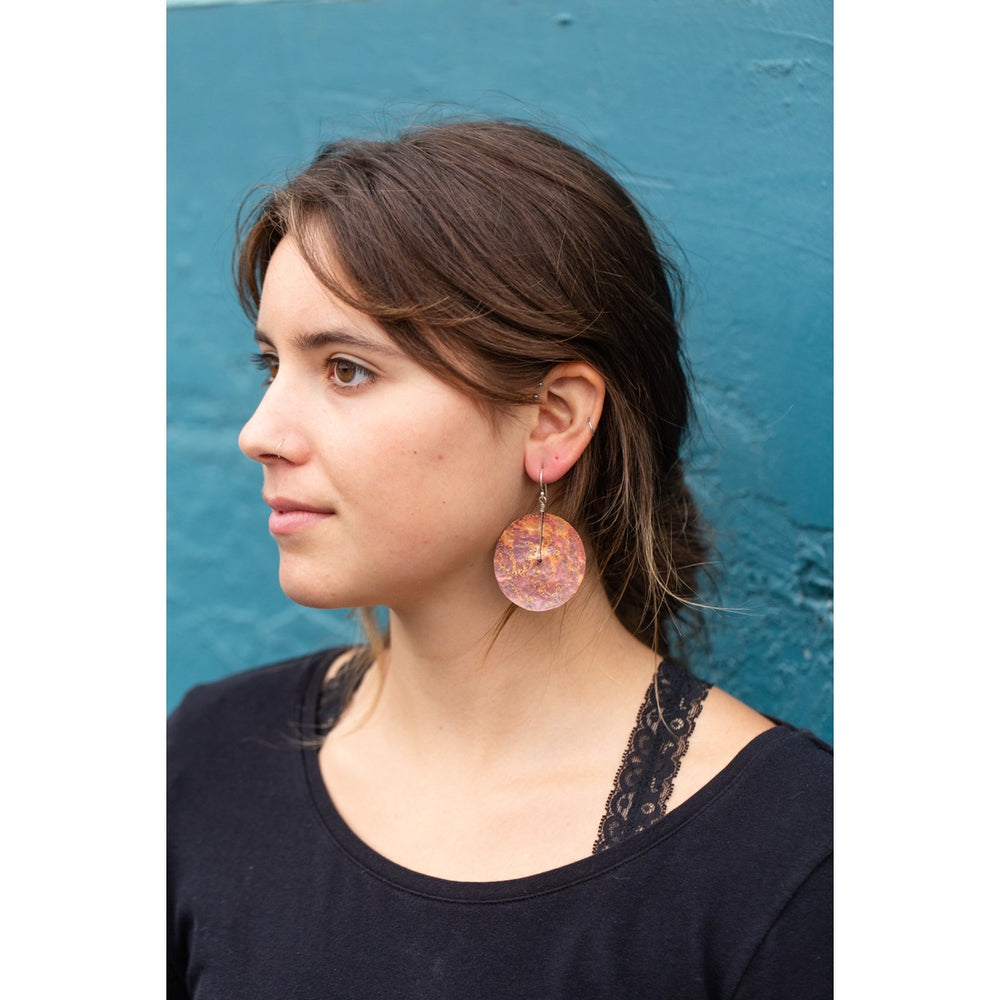 ✨ Hand-hammered copper discs – Each pair is uniquely textured