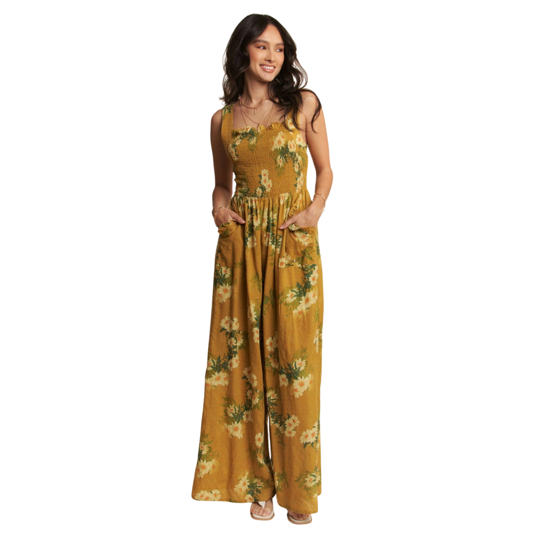 Easy, breezy, and beautifully boldāthis floral jumpsuit is a one-and-done outfit that brings the charm. With a ruffled square neckline and a comfy smocked bodice, itās made to flatter and flow with you from sunshine strolls to summer nights.