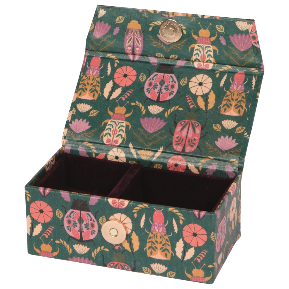 Keep your treasures safe on the go with the Amulet Jewelry Travel Case. Wrapped in sleek emerald green and adorned with jewel-toned scarab beetles, this compact case carries symbols of luck and protection wherever you roam. Inside, it offers a stylish sanctuary for rings, necklaces, earrings, and more — perfect for travel or everyday organization.