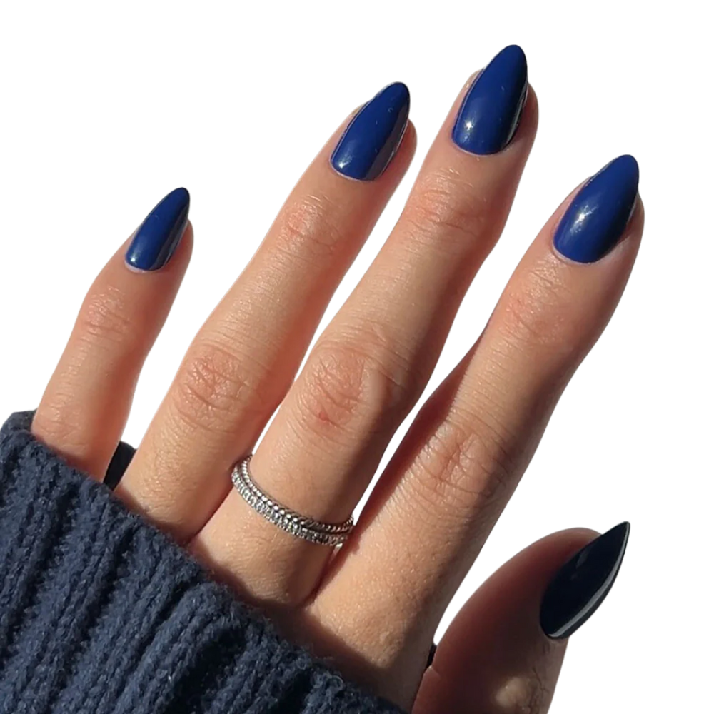 Unveil your bold side with Midnight Blue. This deep, moody navy brings quiet drama to any look — like a starless night sky with a glossy, polished shine. Designed in a short almond shape, these nails add subtle length and elegant curves that feel both modern and timeless.