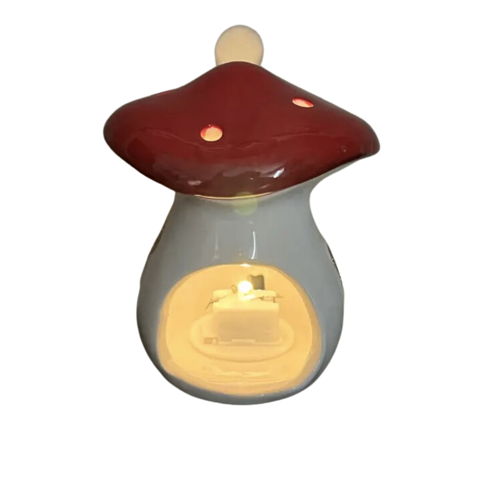 Lighten up your decor with this miniature mushroom. Peek inside the minute window to see just who's dwelling in this ceramic morel motel. Comes with flameless candle (which can be easily replaced with a tea light candle)