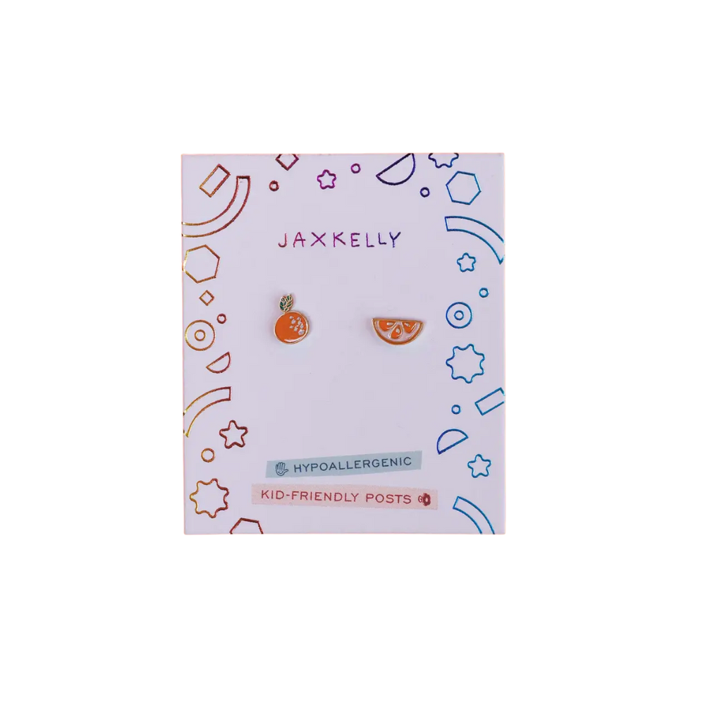 🍊 Orange Enamel Flat Back Kids Earrings