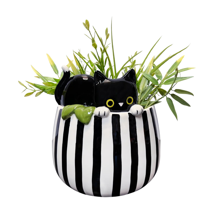 Give your favorite plants a cozy companion with this irresistibly charming kitty planter! Featuring a relaxed grey cat draped over the edge, this ceramic cutie brings a playful yet peaceful vibe to any space. With a built-in drainage hole, your plants stay happy and healthyābecause, just like cats, they deserve a little extra care!