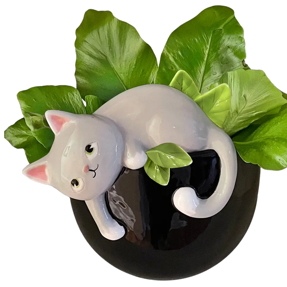ā Adorable design ā A lounging kitty adds instant charm to your plant collection.