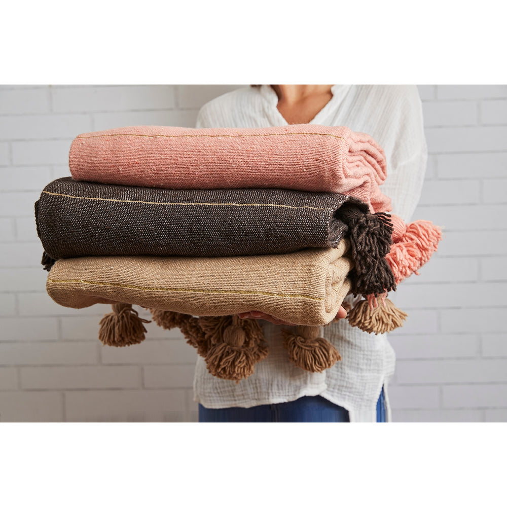 Handwoven textiles are woven on home looms and given as gifts to mark special occasions and milestones. Like a long friendship, the natural cotton in this Moroccan blankets arrives with a bit of coarseness to them, but the fibers relax as the blankets are lived in and loved in.