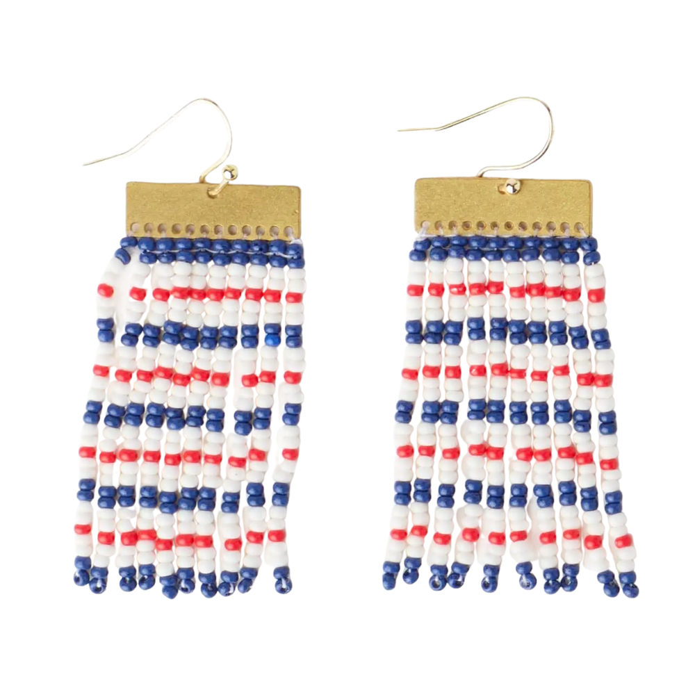 Scout Rectangle Mixed Horizontal Stripes Beaded Fringe Earrings