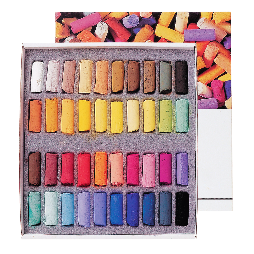 A versatile and comprehensive selection, this 40-piece half-stick set provides a strong foundational palette for pastel artists, offering a wide range of colors to tackle various subjects and techniques. Made with pure pigment and a natural transparent binder, these extra-soft pastels deliver luxurious, highly pigmented color with smooth, effortless application.