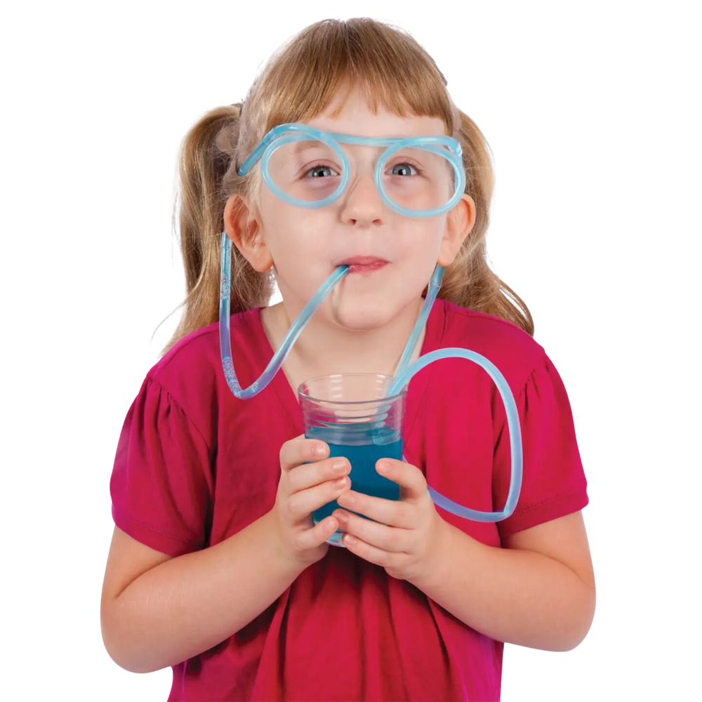 Sip in style and fun with drinking straw glasses! Made from high-quality, non-toxic clear plastic tubing, these quirky glasses let kids and adults watch their drink swirl around their eyes before sipping it up!