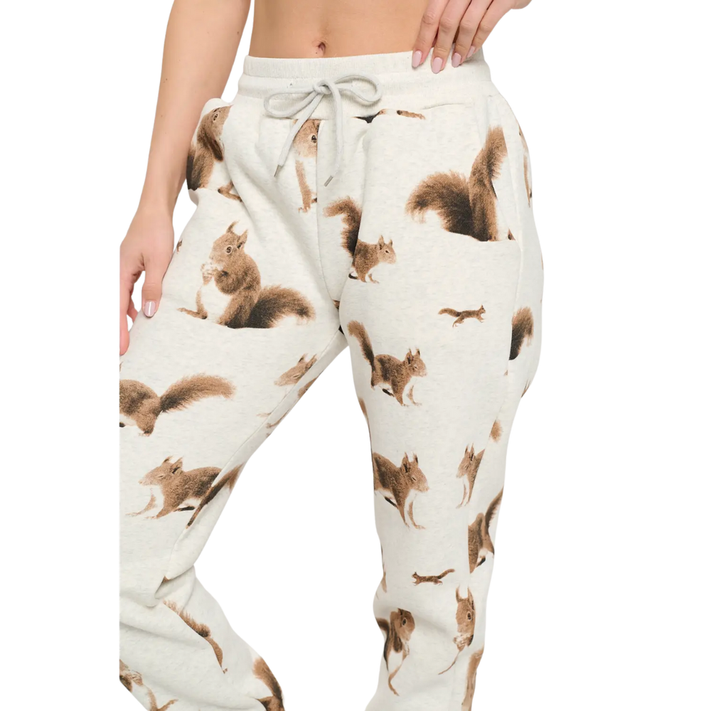 Add a playful twist to your loungewear with these squirrel-printed sweatpants! Covered in an all-over pattern of adorable squirrels, they’re equal parts cozy and quirky. Whether you’re lounging at home, running errands, or just showing off your unique style, these sweats bring comfort with a smile.