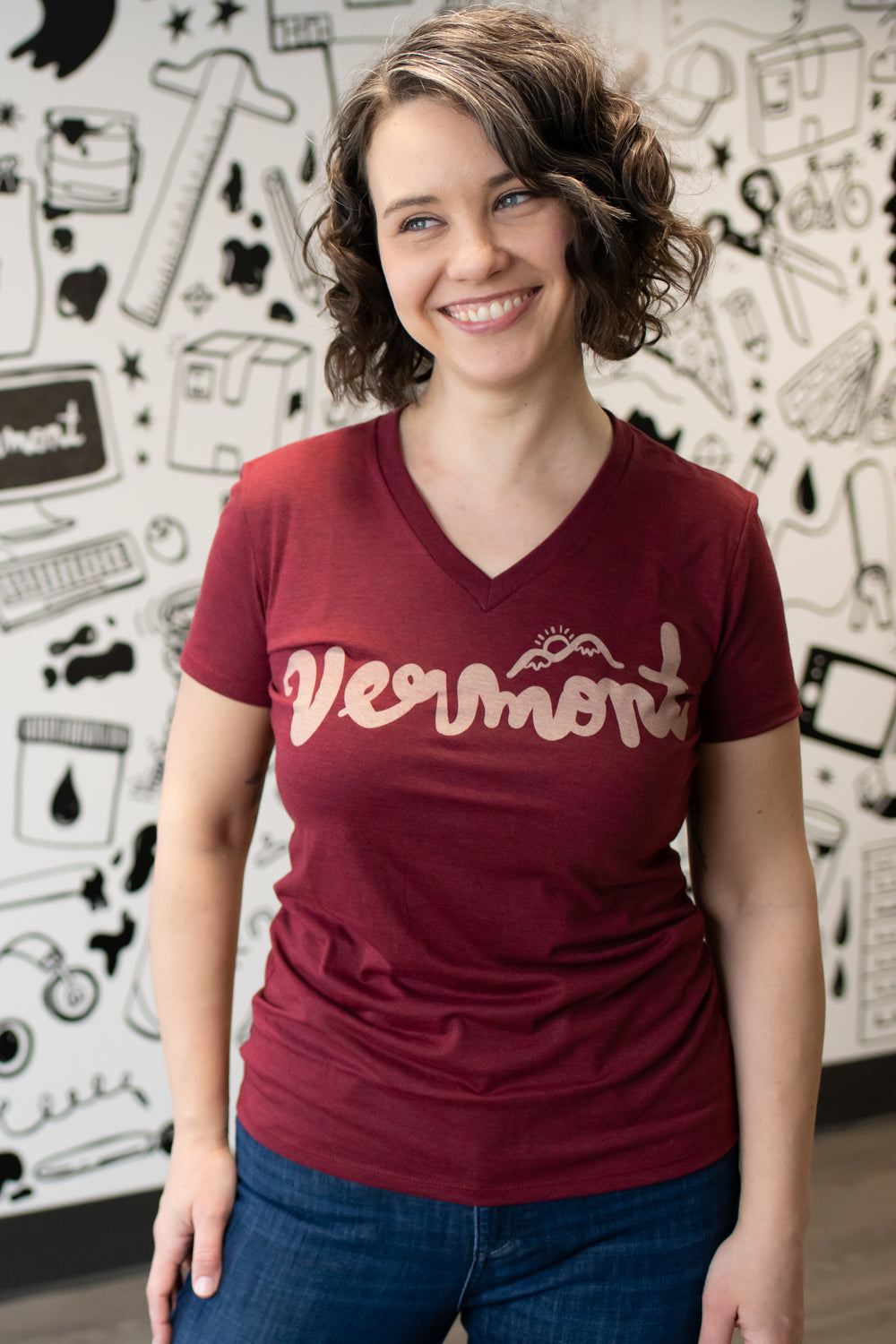 Women’s v-neck tee, 50% Repreve® polyester from recycled plastic; 25% organic, US grown, combed, ring spun cotton; and 25% TENCEL™ Modal. These sustainable fibers combine to create a soft, flexible, and smooth fabric which looks good plain and holds a great print. Each shirt uses 6 recycled poly water bottles and all fabric is spun, knitted, processed and finished in the USA.