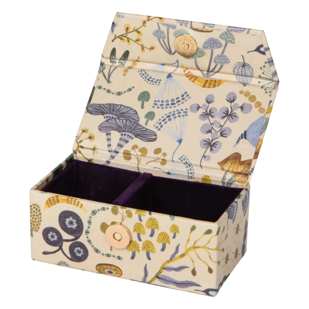 Keep your treasures safe wherever your adventures take you with the Wildgrove Travel Jewelry Case. Lightweight yet sturdy, this compact box is perfectly sized for rings, earrings, necklaces, and other tiny keepsakes. Lined with soft velvet for protection, its design offers a magnified glimpse into the hidden world of plants and fungi flourishing beyond the woodland trail. Practical and portable, it’s a stylish sanctuary for your jewelry on the go.