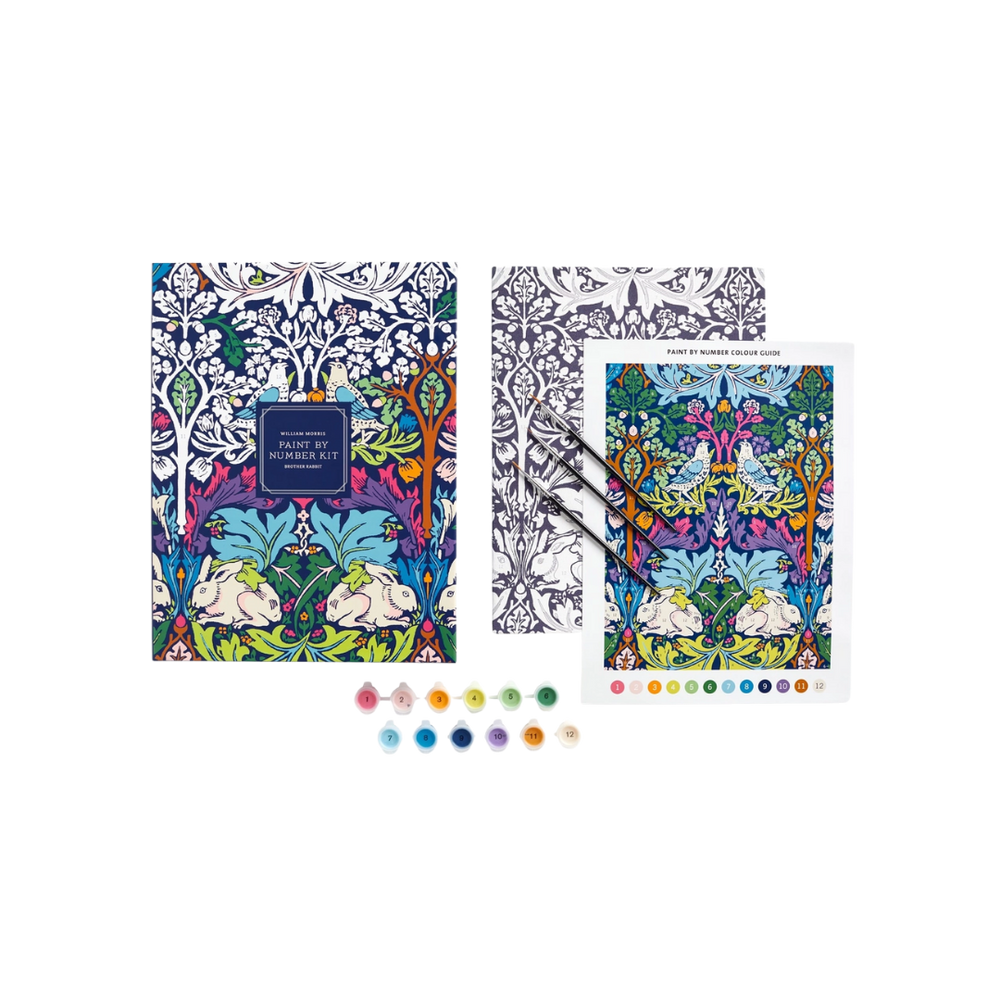 Bring a classic design to life with this William Morris Brother Rabbit Paint by Number Kit, featuring the iconic 1882 pattern filled with rabbits, birds, and botanical details. Designed to be approachable for all skill levels, the numbered canvas and curated paint set make the process both relaxing and rewarding.